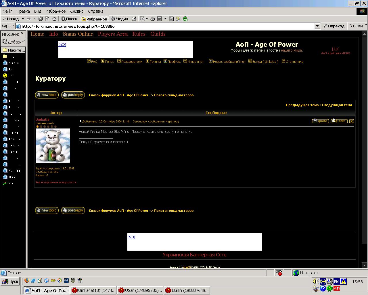 З нами з: 05 вересня 2005 15:31 Повідомлень: 300 Звідки: JaGG Guild |